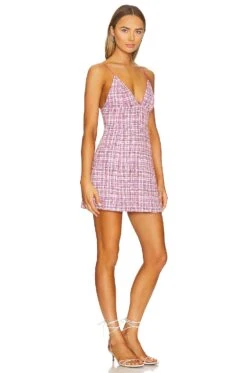 Alice + Olivia Carli Spaghetti Strap Tweed Dress Candy & White