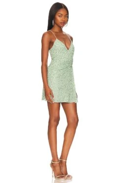 Alice + Olivia Celestine Embellished Wrap Mini Dress Light Sage