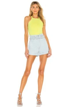 Alice + Olivia Cabot Fitted Crop Tank Neon Keylime
