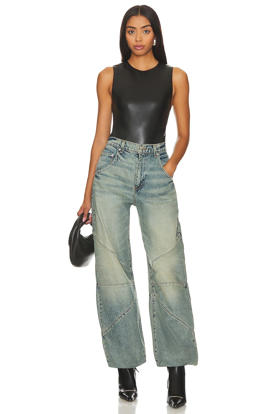 Alice + Olivia Clarinda Faux Leather Bodysuit Black