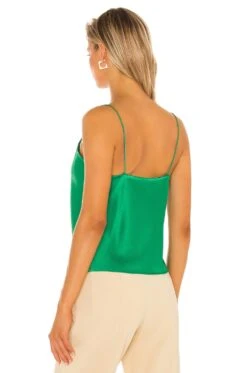 Alice + Olivia Harmon Drapey Slip Tank Dark Emerald