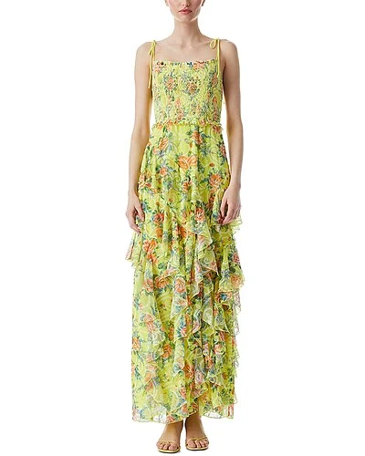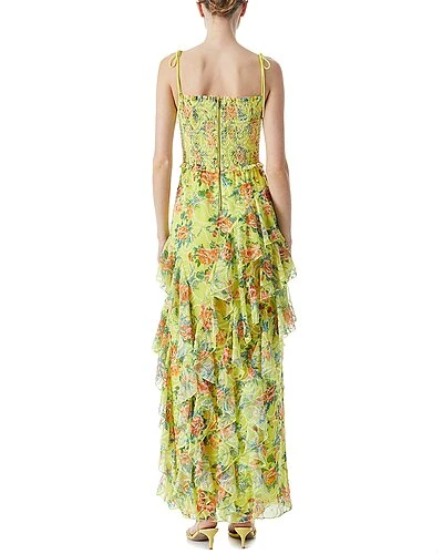 - Jocelyn Ruffle Maxi Dress in floral express lemon sorbet with smocking bust and eyelet texture