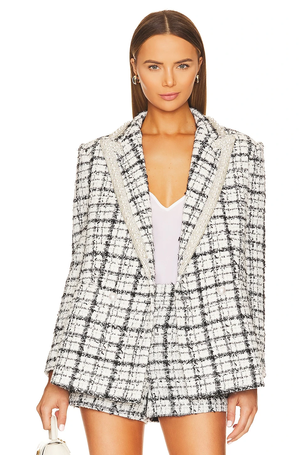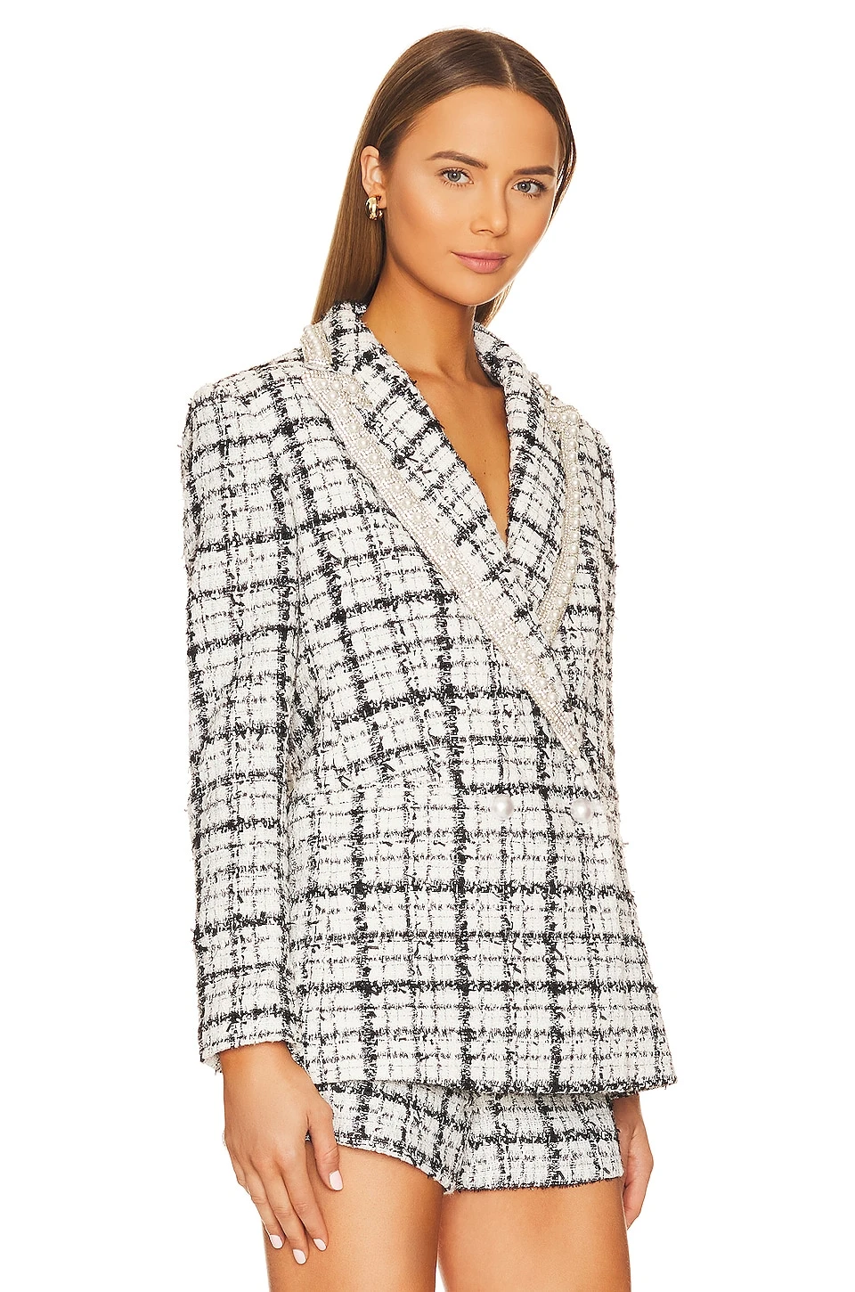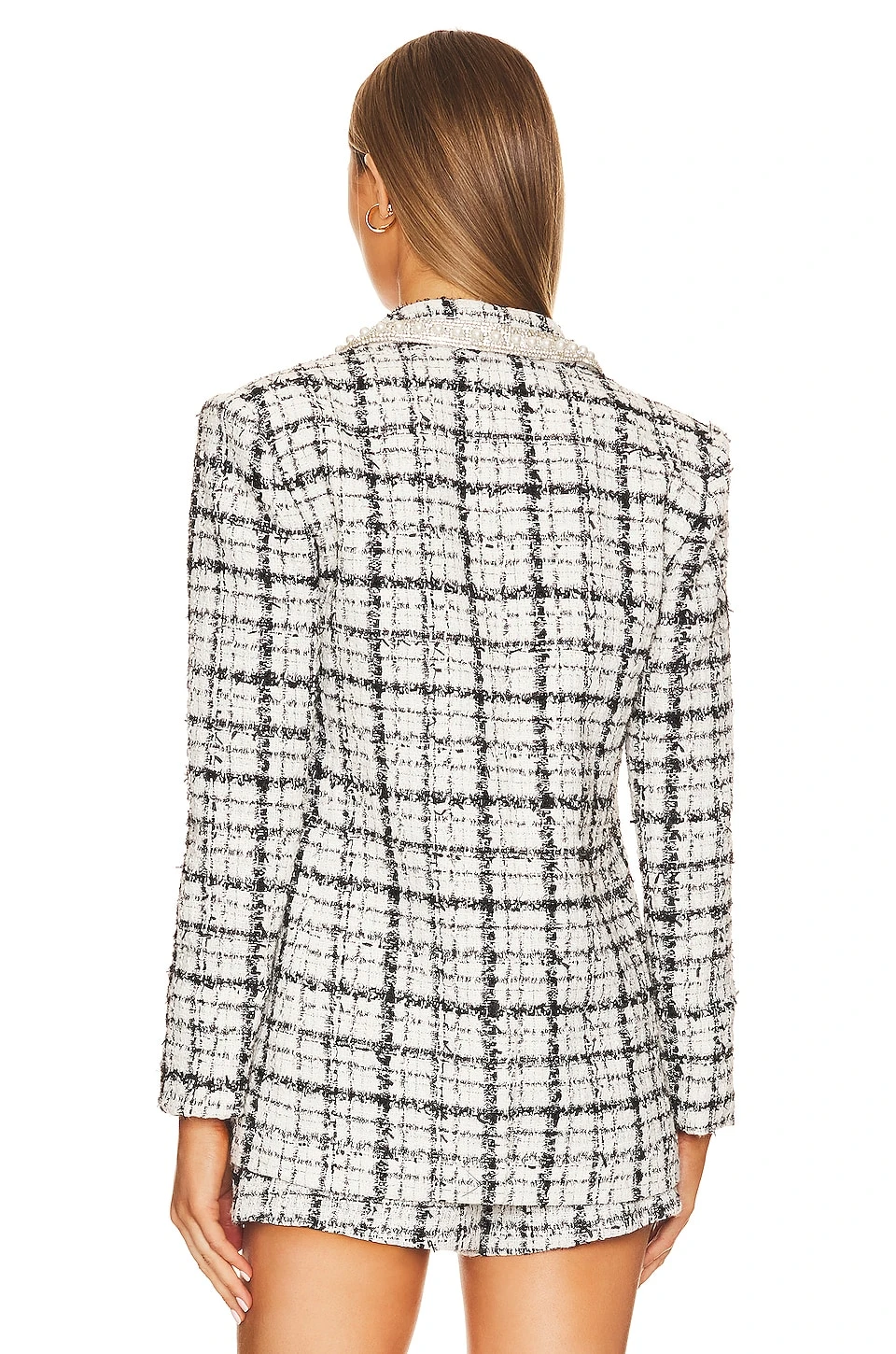 Alice + Olivia Justin Double Breasted Long Blazer Black & Off White