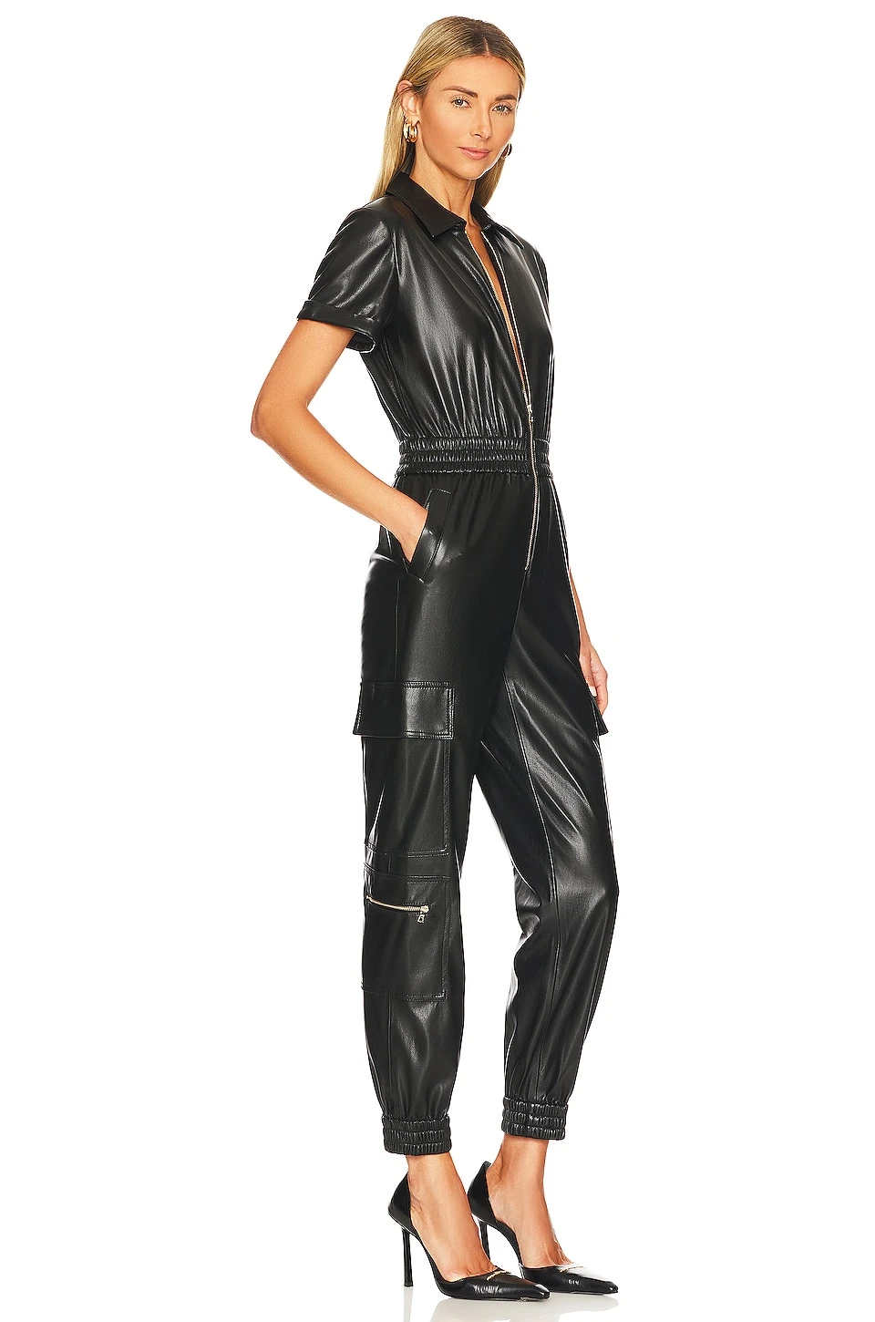 Alice + Olivia Levi Faux Leather Cargo Jumpsuit Black