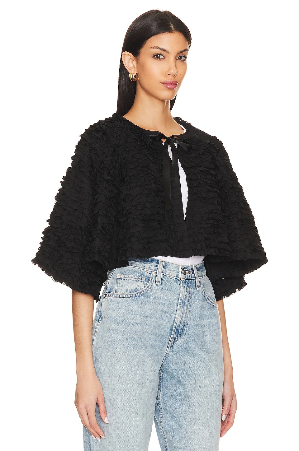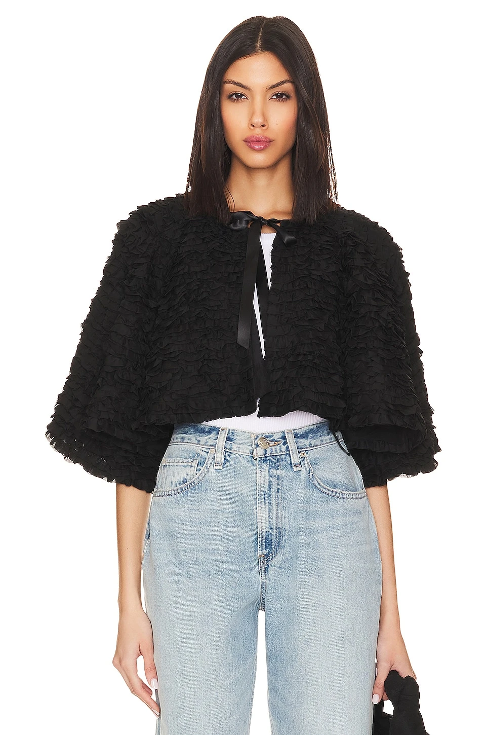 Alice + Olivia Loree Ruffle Tie Front Crop Jacket Black