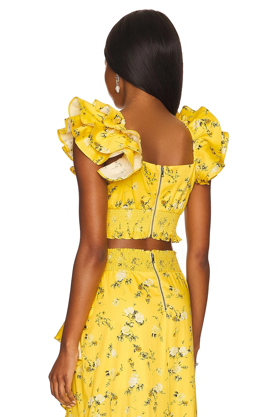 Alice + Olivia Shanae Ruffle Sleeve Tie Top Escape Ditsy Sunbeam