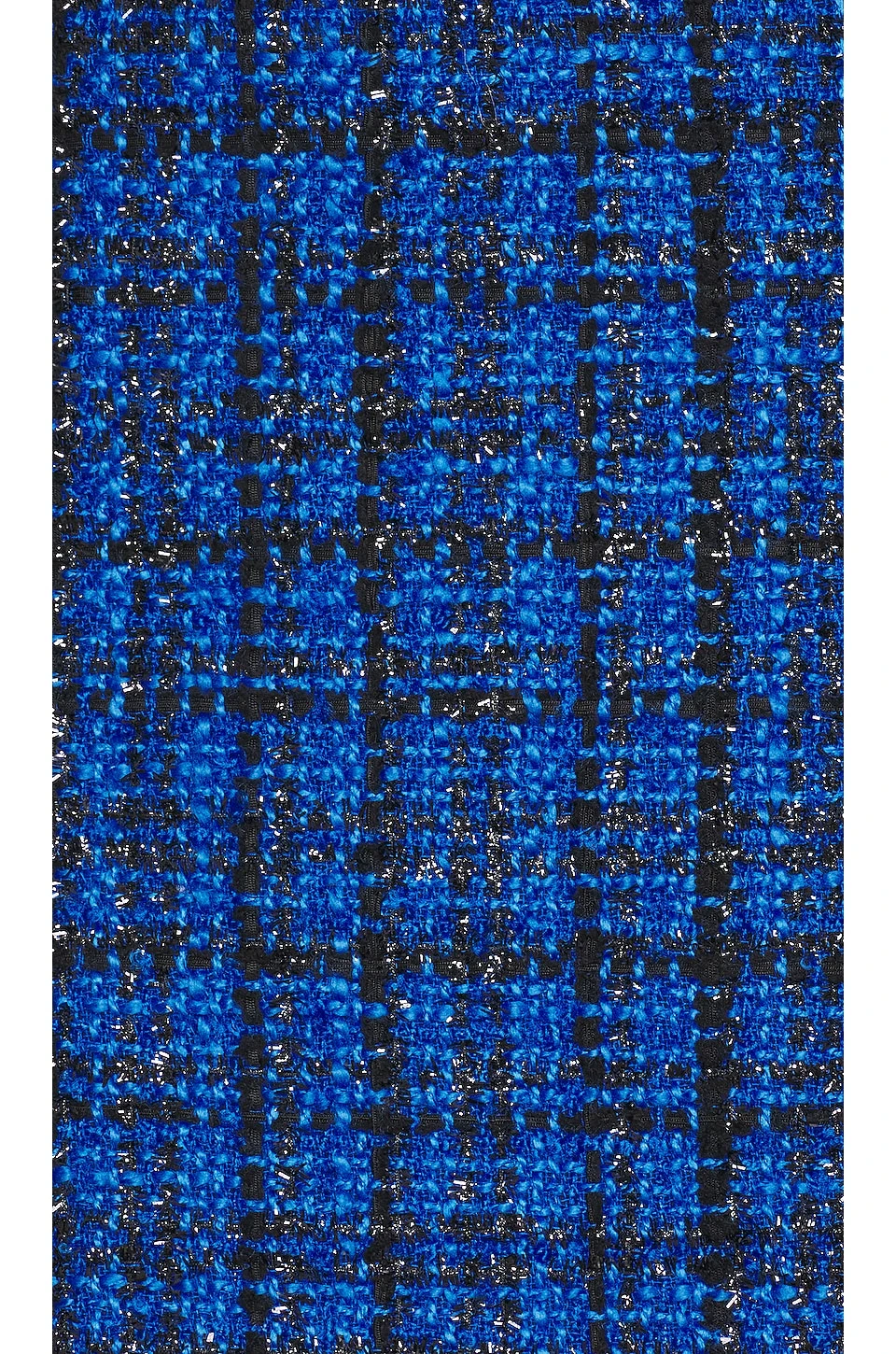 - Tweed fabric with tonal metallic threading throughout and frayed trim