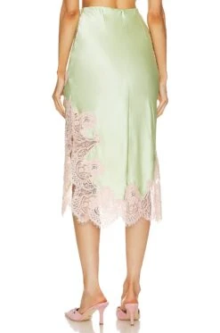 Alice + Olivia Tonia Lace Trim Mid Skirt Pistachio & Petal