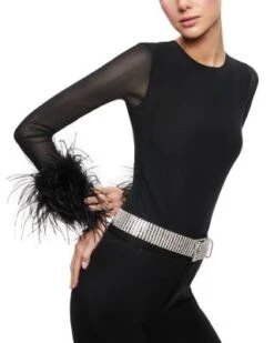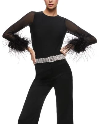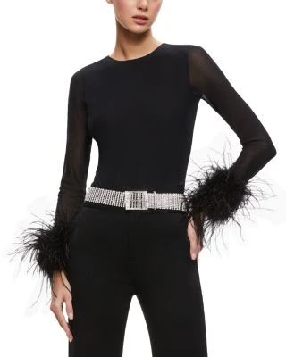 Delaina Feather Trim Mesh Top – Alice And Olivia