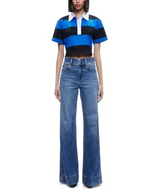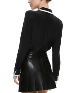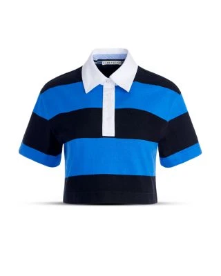 - Contrast polo collar with partial button placket
